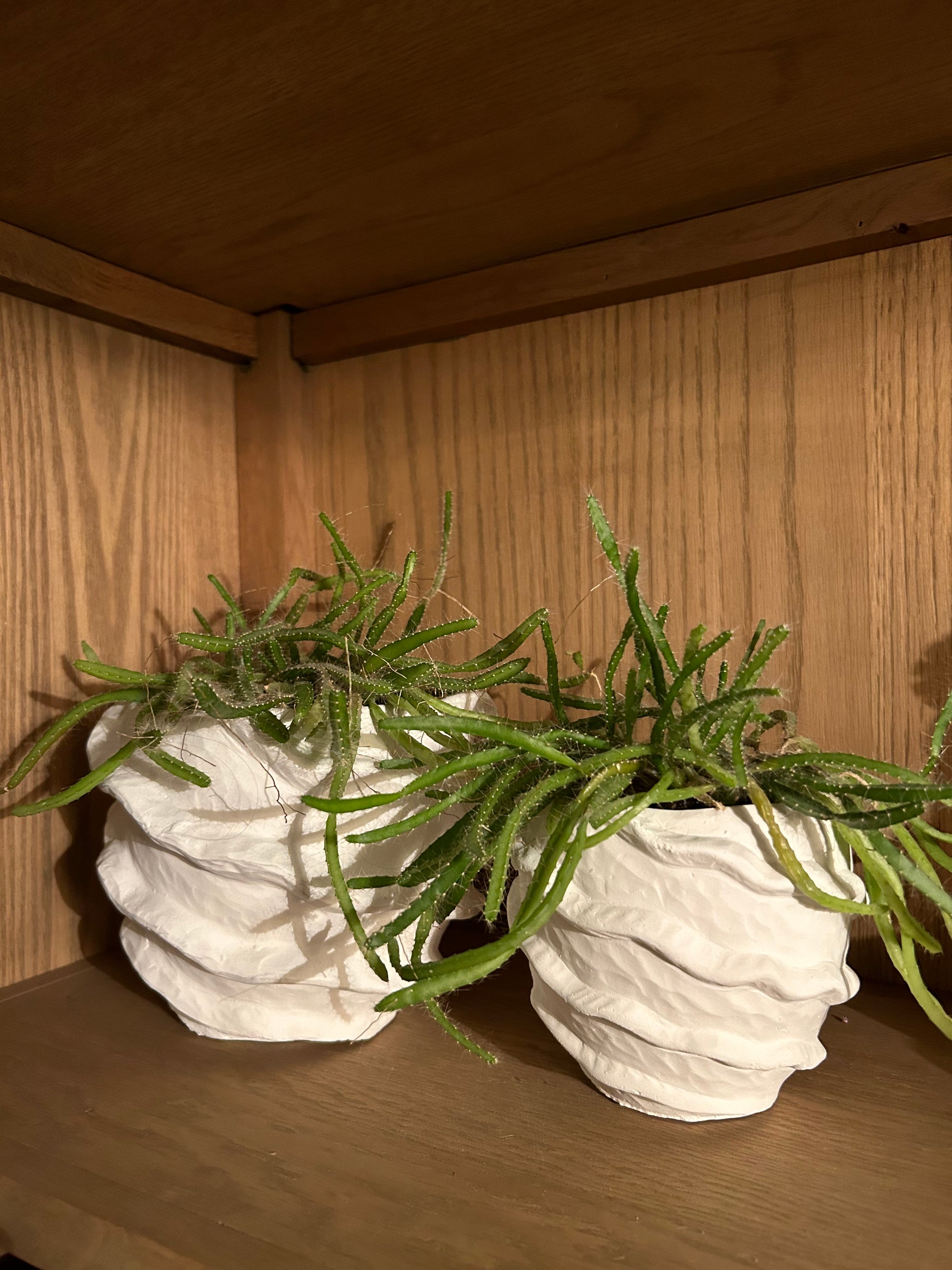Dit wave-potje is perfect om een decoratieve touch aan je interieur te geven. Het is veelzijdig inzetbaar: gebruik het als potje voor een vetplantje, droogbloemen, of plaats er een theelichtje in voor een sfeervol effect. Daarnaast is het ook geschikt als opberger voor bureaumateriaal of keukenaccessoires. Dit exemplaar is verkrijgbaar in een groter formaat, waardoor je de twee mooi kunt combineren. Afmetingen: 13 x 13 x 13 cm.